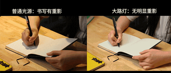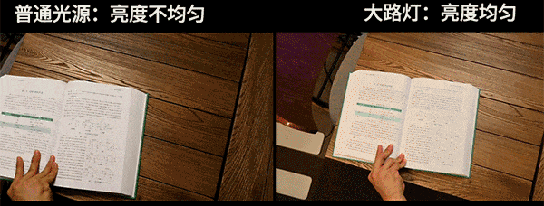 普通的台灯一远离书页就会暗淡,色彩也失真,而大路灯远离也不会感觉光照衰弱。