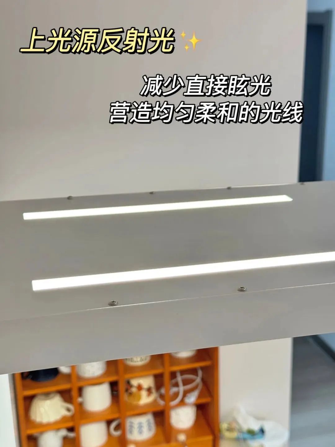 灯盘也足够长,足足约80cm超长矩形灯头,还把灯头设计成前伸30cm,光照范围更大,更好照亮长桌大桌,亲子阅读、二孩共读都无压力。